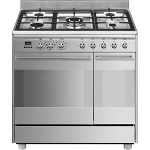 Experience premium cooking versatility with the Smeg SCB92MX8 90cm Dual Fuel Range Cooker in sleek stainless steel. This professional-grade appliance combines a powerful gas hob featuring 5 cooking zones with two spacious electric ovens, offering a total capacity of 105 liters for maximum cooking flexibility. Dual fuel configuration with gas hob and electric ovens Main oven capacity: 70L with second oven offering 35L 5 gas cooking zones with cast iron pan supports Advanced features including 8 auto cooking programs Catalytic cleaning panels and steam cleaning function A-rated energy efficiency Multiple cooking functions including turbo mode and efficient settings Safety features: thermocouple and cold door technology Convenient storage compartment Premium additions: airfry basket, telescopic shelves, and halogen interior lighting The cooker features innovative technology including a new cooling system, easy timer controls, and multiple cooking levels. The removable triple-glazed door glass ensures safe operation and easy maintenance, while the included accessories like the double-sided grill and chrome shelves enhance your cooking possibilities. Smeg SCB92MX8 - Stainless Steel 90cm Dual Fuel Range Cooker - 70L + 35L - A Rated in Metallic Silver