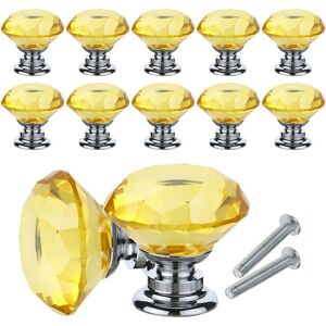 About this item Material: The crystal handle is made of glass and aluminum, which is more sturdy and durable with simple and elegant appearance. Application: The crystal knob is very beautiful and durable. It is very suitable for cabinets, dressers, drawers, wardrobes, bookcases in home, kitchen, bathroom, living room, study room, dormitory and office, and other places where you need to install the handle. DIY assembly. Easy to install: Find the place you want to install on the board and drill a hole, then pass the screw from the back of the board and tighten the knob. Size: What you see now is 30mm, 10 pieces of yellow crystal handle, with 10 screws of the same size, easy to install. Package: You will receive 10 crystal handles and matching screws. The decoration in the picture is for reference only.