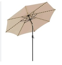 Bring Large Shades for Your Outdoor Enjoyment! Our solar-powered patio offset umbrella measures 303 x 243 cm (Dia. x H), offering spacious coverage for a set of furniture, so you can enjoy leisure time with friends or family in the beautiful garden, patio, or terrace, and it is also great to use beside the swimming pool or beach. It comes with 112 warm yellow LED lights and they are powered by a solar panel, allowing you to enjoy the nighttime with your family under the bright light while saving energy. Besides, the canopy is crafted with premium polyester fabric, which is drizzle-resistant, sun-protection, and heat-insulation, providing better protection outdoors. More than that, the canopy is supported by a powder-coated 8-rib metal structure, guaranteeing great stability and excellent rust resistance. Also, it is equipped with a crossed metal base for securing it in place (Note: We recommend using a weighted base (not included) to fix the umbrella for enhancing wind resistance). Thanks to the convenient crank handle, the umbrella can be easily tilted, opened, or closed.