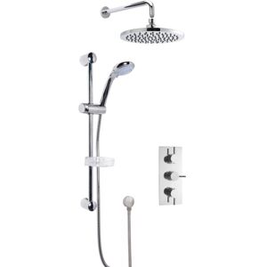 With the essential bits and pieces to create a luxurious shower, this set includes triple shower valve, slide rail kit, outlet elbow, wall mount arm and fixed head. In a contemporary round design, the elements can be placed separately giving flexibility in your shower setup. Manufactured from high quality materials, with thermostatic anti-scald temperature control, in a classic Chrome finish. Matching brassware available for a consistent bathroom design. The elements are separate to allow you to place in different locations to fit your shower layout.