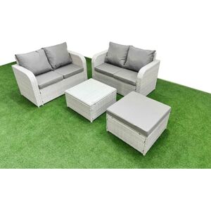 Transform your outdoor space into a stylish oasis with this deluxe PE rattan sofa set – expertly crafted for durability, comfort, and timeless elegance. Perfect for hosting guests or unwinding under the sun! > ✅ Premium Quality Construction All-Weather PE Rattan: UV-resistant, non-fading woven wicker withstands sun, rain, and temperature changes. Rust-Proof Galvanized Steel Frame: Powder-coated for enhanced corrosion resistance and long-term stability. Industrial-Grade Weight Capacity: Sofas support up to 250kg, tables hold 80kg – built for reliability. ✨ Ergonomic Comfort Features Ultra-Plush Cushions: 8cm thick seat cushions + soft backrests with removable, machine-washable covers (dark grey premium fabric). 5mm Tempered Glass Tabletop: Anti-slip suction pads ensure safety; scratch-resistant surface. 📐 Set dimensions: 2 x Love Sofa Size: 124W x 67D x 79H cm 1 x Oversized Footstool: 65L x 65W x 34H cm 2 x Side Tables: 65L x 65W x 66H cm 1 x Dining Table: 110L x 70W x 70H cm 🔧