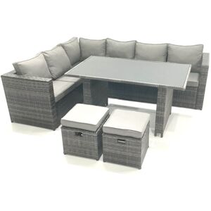 Set Dimensions: 1 Chairs Size: 74W x 65D x 66H cm; 2 Small fully assembled footstools 40L x 40W x 34H cm; 1 Double armrest sofa Dimension :176W x 65D x 66H (cm); 1 Single armrest sofa Dimension:166W x 65L x 66H (cm); Rectangular table 140 L x 80W x 70Hcm( Black Tempered Glass); Dark grey mixed PE Rattan .Color may some difference due to light or monitor .we are unable to return the item due to color problem .the product is delivered on pallet, to kerbside only. Fimous Outdoor Lounge Rattan Corner Sofa Set Garden Furniture Rectangular Dining Table Chair 8 Seater in Dark Grey