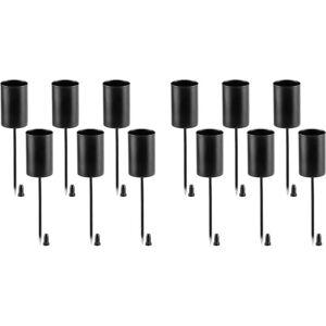 Set of 12 candle picks: black tapered candle holder: approx. 11cm. Candle nozzle length: approx. 4cm. Tips length: approx. 7cm. For candles up to a diameter of approx. 22mm Metal material, non-flammable, stable and safe, simple and convenient. You can drill a hole in the wooden beam to insert the candle holder easily and stably. Candle holder with skewer: the skewer is approx. 7cm long and easy to assemble. Very stable, not easy to fall. Very suitable for flexible on wreaths. You can place candle holders anywhere in your home. Create a romantic and nostalgic atmosphere indoors and outdoors. Candle inserts are perfect accessories for Christmas decorations and wreaths. Especially for decorating Christmas wreaths, flower pots and table arrangements. Creates a great festive atmosphere for you. Multi-purpose: 12-piece candles give you more decoration options. Simple retro candle holder, very suitable for Christmas decoration wreaths, weddings, parties and candlelight dinners. Light up your