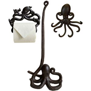 A set of Octopus themed cast iron loo ornaments that are helpful practical additions to any home. The floor loo roll holder has one tentacle pointing straight upwards that can be used to store up to 3 rolls of paper, while the dispenser holds a roll of paper ready when needed. Both made from cast iron, the dispenser measures 17cm tall by 21cm wide, while the loo roll holder measures 47cm high by 19cm wide Alternatively, the loo roll holder can be used in the kitchen as a kitchen roll holder and dispenser. * Cast iron loo roll holder and dispenser * Attractive and fun designs * Lovely gift set