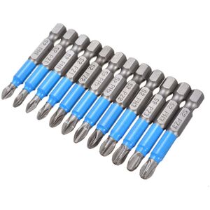 Contents: 6 Phillips screwdriver bits and 6 Pozidriv screwdriver bits. PZ1, PZ2, PZ3, PH1, PH2, PH3. Total Length: 50mm. 1/4" Phillips screwdriver bit with hex shank, handle diameter 6.35mm. Suitable for electric screwdrivers, hand screwdrivers, electric drills, air drills, etc. Made of S2 alloy steel, it is extremely durable and wear-resistant; the surface is sandblasted and wrapped with blue rubber, which is wear-resistant, waterproof, and rust-proof. The non-slip serrated design and powerful magnets firmly lock the screws while driving, saying goodbye to slipping. The drill bit has high concentricity, which effectively reduces the shaking of the drill bit. Perfect replacement for lost, bent, or damaged hex screwdriver bits.