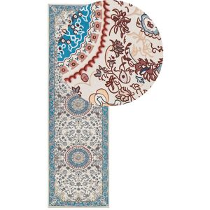 Vintage Pattern Hallway Runner Rug. Presenting a great addition to revitalize your home decor. Fashioned from resilient polyester fabric, this runner rug showcases a captivating oriental-inspired design, adding a touch of vintage allure to your space while effortlessly harmonizing with diverse decor motifs. Equipped with an anti-slip base, it's an ideal choice for bustling spots like hallways and adaptable for dining areas too. Details: Product Type: Low Pile Style: Traditional General Color: Black, Red, Beige Material Type: Fabric Main Material: Fabric Backing Material: Fabric Material Composition: 100% Polyester Shape: Rectangular Anti-Slip Bottom: Yes GSM: 180 g/m2 Pattern: Oriental Pattern Suitable for Underfloor Heating: Yes Weaving: Machine Woven Dimensions: Pile Height: 1 cm Width: 80 cm Length: 300 cm Weight: 2.4 kg Offer Includes: 1 x Rug Key Features: Suitable for Underfloor Heating, Reduced Slipping Risk Thanks to the Non-Slip Bottom Layer, Striking, Highly-Decorative