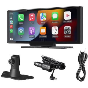 10.26 inch portable car stereo: features a larger 1280 x 720p 9.3 inch full touch screen for better operation. The car stereo supports 2-way display. Sliding screen to display front and rear view at the same time. Front view or rear view 【Wireless A-pple Carplay and Android Auto】 This portable car stereo can connect wirelessly to any device. Apple Carplay and Android Auto. Just turn on Bluetooth and WiFi to connect, and Carplay will connect automatically next time. The car screen can access almost all the functions of a mobile phone, such as music, GPS navigation, calls, messages, etc. 【Media player with voice assistant】 Voice commands allow you to use this car stereo to perform all the functions of your phone, from making calls to music playback and more. The car radio will then execute your commands, increasing safety and comfort. [Bluetooth Transmitter & AUX & FM] Calls and quality The sound is clearer and more stable thanks to the Bluetooth function. Built-in microphone, you can