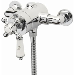 Features and Benefits: Shower valve supplies water to 1 outlet Manufactured from solid brass material for longevity Thermostatic control for safety and peace of mind 15mm female compression Valve has adjustment centres 130mm-160mm so you can replace valve easily without having to worry about re-tilling WRAS approved product Suitable for high and low pressure systems Suitable for combi boiler Manufactured to comply with WRAS and TMV2 Guarantee :10 Year (3 year on serviceable parts) for Warranty Information See Product Documents Shower Type Thermostatic Shower Valve Controls 2 Shower Valve Position Exposed Valve Shape Round Handle Type Crosshead/Lever Handle Shape Round Shower Valve Outlets 1 Minimum Pressure 0.2 Bar Maximum Pressure 5.0 Bar Shower Valve Width 124mm Shower Valve Depth 149.6mm Valve Orientation Landscape Pipe Centres 130-160mm Inlet Connection Size 15mm Outlet Connection Size 15mm Material Brass Colour Chrome Brand Sagittarius Collection Kensington Style Traditional