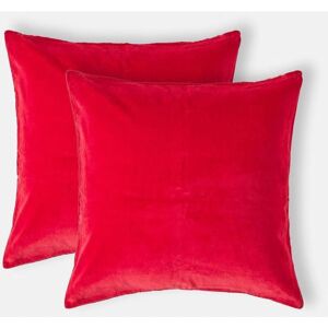 Brand Homescapes Size Available 40 x 40 cm Colour Red Cover Material Care Instructions Machine washable at 40 degrees on gentle cycle. Pack Includes Two cushion cover Set of 2 Luxury velvet cushion cover, woven from 100% cotton velvet to create a plush home accessory that feels super soft. Unlike polyester cotton that can sometimes look and feel cheap, our cotton velvet cushion cover is completely natural and creates a more subdued and subtle colour that will give your interiors a rich look. In a deep red shade, this timeless cushion cover will work with dark or light interior styles. Available in three sizes, this velvet cushion cover is perfect for layering on your sofa or bed. An on-trend style, Homescapes? range of velvet cushion covers are available in 8 contemporary colours including burnt orange, red, pink, emerald green, mustard, grey and slate blue. Each one comes with a zip closure to make removing and inserting your cushion pad (sold separately) quick and easy. Part of