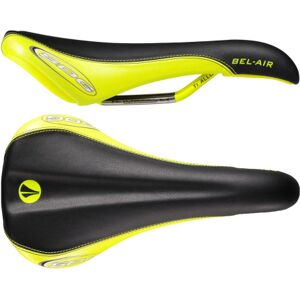 The SDG Bel Air Ti-Alloy Rail Saddleare the modern classics providing ultimate comfort, support and control. The Bel-Air uses a resilient polypropylene base that allows extra flex on the edges through each pedal stroke and incorporates a base bridge for stiffness and ideal power transfer. The Bel-Air uses a mid-density PU foam, and is strategically designed with a rear rise which helps rotate the pelvis forward and can provide extra support for one who likes to use the saddle's Optimal Rideable Area (ORA). The Bel-Air incorporates a 3/4 cut design for perennial relief. The Bel-Air series features a nose platform, providing greater surface area control and power transfer, as well as being designed with a down curved nose for moving forward on the saddle on seated climbs or in an aggressive forward riding position. Available in multiple covering options, these decade proven designs are the ultimate tool for a wide variety of cyclists. SDG Bel Air Ti-Alloy Rail Saddle Features Decade proven design for all around comfort and functionality. Slight channel groove for additional comfort enhancements. Multiple microfibre covers and kevlar sides available. Nose platform allows greater surface area for more control and power transfer. Rear rise rotates pelvis forward for added support. Comfort cleavage. Injection moulded tail and nose bumpers. Disciplines: Mtn (XC, Trail, Enduro, DH), CX, & Road (Endurance & Racing). Size: 270 x 140mm. Ti alloy rails. Weight: 280g.