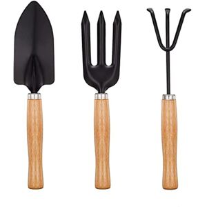 【Premium Quality】It was made of Iron and wood handle, sturdy and durable garden tools. Small and light weight for easy and convenient use, and creates lots of pleasure. It is an great gardening plant tools for digging, transplanting, loosening soil, weeding and more. 【3 Piece Mini Set】Set of durable mini garden tools, consisting of a rake, fork, and shovel. Mini size, portable tools, erfect for tending to small gardens and indoor plants. 【Size】Rake length (Approx): 16 cm/ 6.3 inch, shovel length (Approx): 18.5 cm/ 7.3 inch, fork length (Approx): 18.5 cm/ 7.3 inch. 【Widely Used】Small and lightweight, the set is ideal for transplanting and tending to seedlings. It is also great for planting bonsai, small herbs, succulents and house plants etc. Mini garden tool set for planting use, also suitable for kids use, parents can develop children's hands-on skills while enjoy the fun of gardening. Whether you want to loosen soil for aeration, dig into hard soil to prepare a new flower bed or