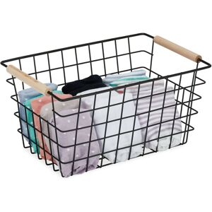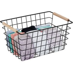 The metal basket is a real storage all-rounder and provides stylish storage space for smaller items. The 2 wooden handles make it easy to carry. Use it to store cosmetics or clothes such as socks, underwear, scarves and accessories. Use the basket in the bathroom, in the wardrobe or as a shelf basket. The open and timelessly simple lattice design not only gives you a quick overview of the contents, but is also a real eye-catcher. Wire basket in detail - Size H x W x D: approx. 16 x 31 x 21 cm - Interior H x W x D: approx. 15 x 28 x 20 cm - Base W x D: approx. 25 x 15 cm - Load capacity: approx. 10 kg - Weight: approx. 400 g - Material: Metal, beech wood - Colour: White, natural - Set of 2 Stylish basket organiser for storage - Practical storage basket for the home - Basket in timeless lattice design sets accents - Storage space for accessories, cosmetics, bathroom articles and co. - Basket with high rim has plenty of space for small things - Several baskets can be stacked empty inside