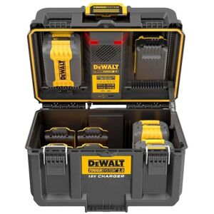 The DEWALT TOUGHSYSTEM™ 2.0 Charger Box Comes with all the standard TOUGHSYSTEM™ features. The Dewalt DWST83471 Charger is a two-port charger for Dewalt 18V XR and FlexVolt series cordless power tools in the form of a ToughSystem 2.0 case. The Dewalt DWST83471 loader is compatible with ToughSystem cases, allowing it to be combined with other cases for easy and safe transport. The device has all the safety and mobility standards of the ToughSystem series cases - the possibility of mounting a padlock, metal buckles and tightness protecting against moisture and dust. The Dewalt DWST83471 charger will have two USB ports - one inside, the other outside (at the back), which will allow you to charge accessories such as a speaker, radio or smartphone. Features and Benefits 2x 4Amp Simultaneous Charging Port 4 Amp Charging For 18V / FLEXVOLT Battery Packs (excluding the 1.5ah battery) IP55 Waterseal: Providing Water And Dust Protection To The Contents Inside The Box & Also Visible at Point Of
