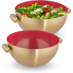 This elegant metal bowl is a great way to serve salad, crisps or other snacks. The stylish two-colour design makes this salad bowl a great focal point on any table. However, it isn’t just good for serving food, it also makes a great mixing bowl when baking or use it for food prep. The bowl is made from resistant stainless steel and can be cleaned easily and quickly under running water after use. Mixing Bowl in Detail - Dimensions H x Ø: approx. 10.5 x 20 cm - Capacity: approx. 2 litres - Weight: approx. 280 g - Material: Stainless steel - Colour: Pink, Gold - In set of 2 Practical Stainless Steel Bowl for Salads and More - Use for serving salads or snacks like crisps etc. - Perfect as a mixing bowl when baking - The elegant design looks great on any table - Metal bowl made of robust and durable stainless steel - Can be cleaned easily by hand after use Included in Delivery - 2x serving bowls - Decorative items are not included in delivery