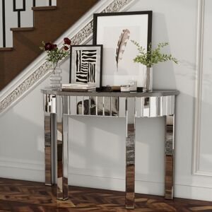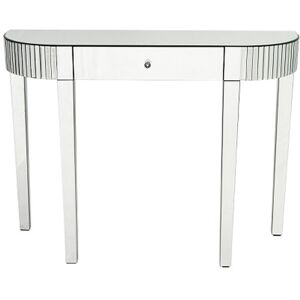 This console table is part of our beautifully ornate Tiffany Range. A visually stunning mirrored design that epitomises French elegance. This console table will add a vintage look to your living room or hallway and fit in with any colour scheme! The console tables features one drawer storage with a crystal style knob and painted in a metallic silver with an antiqued appearance and ornate carved detailing. Perfect for placing in your living room or hallway and use as a glamorous display table. With even more furniture available in our Tiffany Range that will allow you to match your Furniture. Part of a large collection of bedside tables available in a wide variety of styles colours and designs. This table comes partially assembled with just the legs to attach which is quick and easy to do. Want to view all items within this range? Browse our Tiffany Range category for more options. Colour: Silver Finish: Mirrored Material(s): Glass Material type: Fir Wood Frame with Beech Veneer Tops topped with Glass 80cm x 81.5cm x 30cm (width x height x depth) Partially assembled Assembly Time: Approximately 10-15 minutes to attach legs