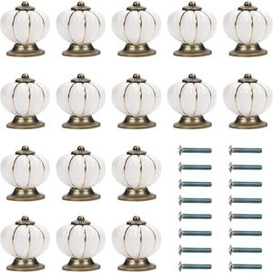 SET OF 16 CERAMIC KNOBS: Our set includes 16 white ceramic cabinet knobs with gold plating. These handles are 1.5 inches tall. The head of the handle measures 3.6 cm in diameter. There is a hole at the bottom of the knob to allow the handle to be attached with a screw. PUMPKIN SHAPE: These durable ceramic knobs are shaped like a pumpkin for a vintage and classic look. Each white cabinet handle and embossed gold details complement all furniture. The ceramic body guarantees the solidity, resistance and firmness of the material when pulling, as well as a comfortable grip. It has a smooth texture with no sharp edges. Therefore, each knob is easy to clean and safe for children. FURNITURE RENOVATION: Install this beautiful ceramic door handle on your furniture to give it a new look and a new life. This European style furniture handle is perfect for renovating your furniture. With a rustic-chic and classic effect, they bring the perfect finishing touch to your furniture and bring harmony to