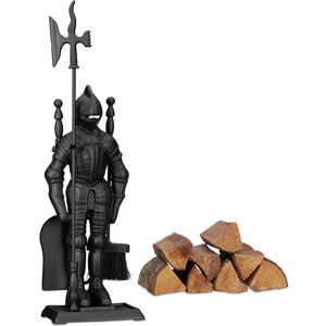 A crackling fireplace warms you up on cold and rainy days, when comfort and cosiness is the thing you need the most. With this fire irons kit, you can successfully kindle your fire and assure the pit always stays clean. Made of steel, this set is especially stable and lasting. Stainless steel handles add a more modern and luxurious look. You can hang all tools from the rack for neat storage and to always have them in reach. Fireplace Tool Set Details - Stand H x D: app. 68.5 x 20 cm - Total weight: app. 2 kg - Material: Stainless steel, steel - Colour: Grey, silver Fireplace Companion Set Details - Poker length: app. 53.5 cm - Length ash shovel: app. 51 cm - Length broom: app. 53 cm (bristles app. 6 cm) - Length tongs: app. 53.5 cm 5-Piece Fire Pit Accessories Set - With stand for storage - Modern, stylish design - Ash shovel, broom, tongs and poker - Fireproof and very durable - Long enough for sufficient distance to the fire Included in Delivery - 1 x Fireplace Tool Rack - 1 x Ash