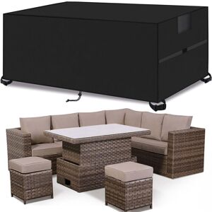 Made from 600D PVC-lined oxford fabric, this heavy-duty garden furniture cover is waterproof, UV-resistant, tear-resistant and fade-resistant, better protect your furniture from harsh environments such as strong sunshine, rain, snow, dust and more.Not only does it provide stronger water resistance and crack resistance, but also it is environmentally friendly. Besides, there is four click-close straps at the bottom, which was special designed to keep the cover secure on the furniture, so that it will not be blown away by wind. Air Vents prevent wind lofting and are lined with mesh barriers. It can be used as a handle for easy fitting and removal. It's very easy to wash, just need hose the cover down with water and dry it up in the sun. This cover come with an extra carrying bag for easy storage when not in use.This garden table cover is suitable for most shapes, such as dining table, coffee table, rattan furniture, sofa set, rectangular and oval furniture set etc.. Dakota Fields