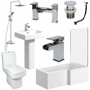 The Complete Bathroom Bundle We pride ourselves on our ability to mix the finest products with the finest accessories to produce a bathroom suite that’s unrivalled in more ways than one. With the Royan you’ll receive everything you need to get your bathroom into the 21 st century, including the gorgeous L shaped shower bath, close coupled toilet, full pedestal basin and all of the complementary brassware like taps and wastes. Styling and practicality are paramount with the Royan suite, with the multi-use bath and stunning contemporary detailing all round, all supplied for an utterly fantastic price. Long-Lasting Products With Exceptional Finishes When selling bathroom products the materials and finishes are critical to ensuring a long-lasting, durable product that looks good. The toilet and basin are precision manufactured from porcelain and coated with vitreous china which gives it that gloss white finish. To accompany the porcelain we have the acrylic bath tub. This is a great