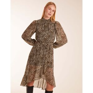 Swing into the leafy season with this lovely High Neck Wrap Midi Dress. Style it with black high knee boots for the ultimate look! Shell: 100% Polyester, Lining: 100% Polyester Made in ChinaMachine washable Halter neckLong sleeve Tie waistModel wears Size 8Model height: 177cm / 5'10"