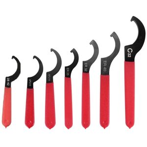 Made of high quality steel, strong and , not easy to corrode, rust, deform and break, the handle is made of high quality rubber, environmentally friendly and sturdy, you don't need to worry about the handle crumbling like paper, the non-slip rubber handle is designed to provide a soft grip, Provide high torque and improve work efficiency. 7 different sizes of shock wrenches (38-42 ER40 ER32 ER25 APU16 APU13 C32) provide a good range for different purposes, such as auto repair, plumbing repair, electrical repair, mechanical. this coilover wrench can be applied to adjust the coil shocks,, and suitable for daily use and outdoor activities, bring more convenience to your life Colour:Black & Red Material:steel+rubber Package Contents: 7 * shock wrenches Only the above package content, other products are not included. Note: Light reflection and different displays may cause the color of the item in the picture a little different from the real thing. The measurement allowed error is +/- 1-3cm.