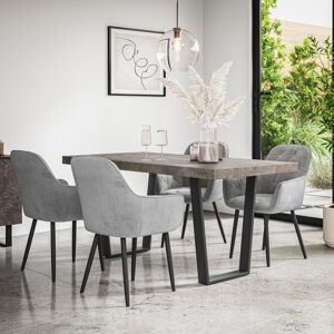 The Donni Dining Table is a beautifully crafted rectangle dining table with a timeless, minimalist design. The table boasts an elegant hardwearing, scratch resistant Black Oak effect table top that brings warmth and natural charm to any dining space, perfectly complemented by unique, sturdy, solid Black metal legs for a modern contrast. The Donni's simple yet sophisticated design makes it a versatile centrepiece, ideal for both casual meals and formal gatherings. The Donni Dining Table can seat 4-6 people, and yet its compact rectangle shape is perfect for maximizing space while creating an inviting and intimate dining experience. The Donni Dining Table is available in a range of tops (Grey, White Marble effect. Oak effect, and Black), with Black metal legs. With the Monza Dining Chair the Donni Dining Table will be the complete set. With a choice of Linen and Faux Leather in various colours, this sleek modern Dining Chair compliments the Donni Dining Table brilliantly. Available as a set of 4 or 6 with the Donni Table. Dimensions: Height: 75cm. Width:160cm. Depth: 180cm. Leg Depth: 75cm. Leg Width: 145cm. Chair Height: 92cm. Chair Width:45.5cm. Chair Depth: 58cm. Seat Depth: 43cm. Seat Width: 44cm. Seat Height: 46cm. Backrest Height: 50cm. Backrest Width: 35cm. Fairmont Park Colour: Oak/Black/Grey