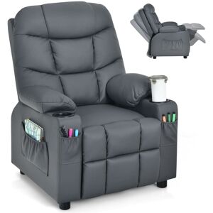 Our kids recliner chair is an ideal gift for your children. It has 1 adjustable backrest, 2 comfy armrests and 1 retractable footrest, which is perfect for gaming, reading or sleeping. Besides, the PU leather surface and sponge padded seat also add more seating comfort. And the hidden storage space under the armrest is ideal for placing kids’ snacks or toys. Solid wood frame and anti-slip foot pads ensure overall sturdiness. Features: Smooth PU leather & soft fillings for a comfy sitting experience Thick padded backrest and retractable footrest allow kids to relax Adjustable recliner sofa for sitting, reading, playing or sleeping 2 flip-up armrests with storage keep kids’ items within reach Solid wood frame can support up to 50 kg 4 anti-slip feet help to add overall stability and reduce noises Nice for boys or girls over 3 years old Easy to assemble with the detailed instruction Specifications: Color: Black Material: PU Leather, Sponge, PP Cotton, Solid Wood, Plastic Product