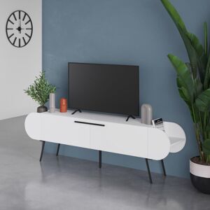 FWStyle 2 Door Capsule TV Unit -Introducing the FWStyle 2 Door Capsule TV Unit, a chic and functional addition to your living room. Featuring an elegant modern capsule-inspired design, this unit enhances any decor with its stylish lines and sophisticated appearance. It includes one open-plan shelf on each side, perfect for displaying your media devices or decorative items, while two large doors provide ample extra storage space to keep your living area organized. -Standing on solid, strong black metal legs, this TV unit combines stability with a contemporary aesthetic. Finished in a sleek matt white, it boasts a durable scratch-resistant melamine coating that adds further protection against daily wear and tear. Delivered in eco-friendly, fully recyclable outer packaging that has been drop tested to ensure damage-free delivery, you can trust that your unit will arrive in perfect condition. It comes flat packed with full, clear, and concise instructions for easy assembly. Elevate your