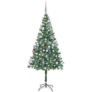 This hinged pre-lit Christmas tree is an ideal addition to any space in need of a splash of Christmas merriment. This beautiful Christmas tree with branches made of PVC and PE. Additionally, the included steel stand provides your tree with optimal stability. Thanks to the energy-efficient LED lights, it lights up beautifully and creates a cosy holiday atmosphere. Featuring pine cones and red berries sprinkled throughout needles, this Xmas tree will bring any home to life. Tree branches are attached at the centre pole using a hinge system. Due to the hinges, the branches will automatically move to the right position. Have fun during the holidays with this lovely Christmas tree! Note: Each product comes with an assembly manual in the box for easy assembly. Note: The product has a USB connector, but the certified 5V USB power source is not included. Colour: Green Material: PVC, PE, steel Total height: 150 cm Tree diameter: 68 cm With 303 PVC tips, 77 PE tips and 76 pine-shaped tips