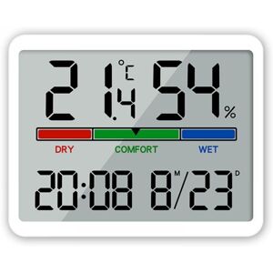【Large LCD Screen & Clearer Reading】- Indoor thermometer hygrometer with 9.3*7.3*1.5CM LCD screen- Elegant and slim frame, easy to read from any angle and distance. 【Comfort Zone Indicator】The symbols indicate DRY, COMFORT and WET conditions based on the air humidity and indoor temperature. It helps you feel comfortable by having time to adjust the thermostat and your humidifier or dehumidifier settings. 【Super Portable & 【3 Mounting Methods】Digital indoor thermometer with 3 mounting options for table, wall and magnetic mounting. Flexible to hang, wall-mounted or stand, only indoors, ideal for monitoring in the basement or garage. 【Fast Response & High Accuracy】With fast response updated every 10 seconds and accurate measurement values, large measuring range that measures temperature: -9.9°C - 60°C (14.2°F - 140°F), temperature accuracy: ±1°C. 1°C. Measure humidity: 10%RH~95%RH, humidity accuracy: ±3%.