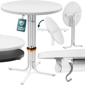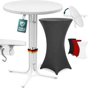 The party centrepiece: elegant bar table with cover! Whether for a festive champagne reception, a garden party or a romantic wedding: the foldable CASARIA® bar table with cover cuts a fine figure at any celebration. It is 110 cm high and has a table top with a diameter of 80 cm. With its simple design and cover in red, black or anthracite, you can instantly create a stylish atmosphere. The table has height-adjustable legs and a scratch-resistant, weatherproof table top made of MDF with a PVC coating and is suitable for indoor and outdoor use. There are also 2 hooks on the bar table for hanging bags or jackets . The set is easy to clean and can be stowed away to save space; the table top can simply be folded down. Perfect for private parties, weddings and other events! Product Details: 80 cm wide table top Table easy to clean, cover washable at 30° C Table is scratch-resistant, weatherproof and UV-resistant 4 height-adjustable legs 2 hooks for jackets and bags Folds away to save space