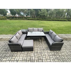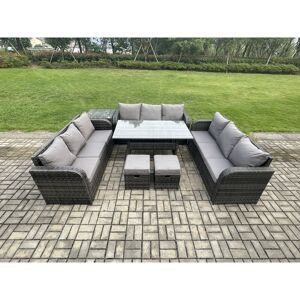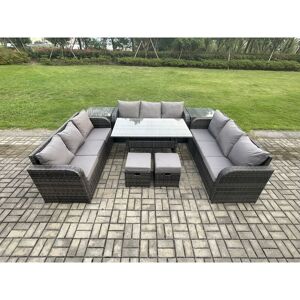 Set dimensions: 2x Side table:65L x 65w x 66H cm; 2x 3 Seater Sofas: 177W x 67D x 79H cm; 2x Reclining Chairs : 74L x 67W x 79H cm; 1x Firepit Table : 140L x 80W x 69H cm; Dark grey mixed rattan with dark grey fabric .Color may vary due to light or monitor .we are unable to return the item due to this problem .Please consult before purchase if you have requirment on color saturation. The 2 armchairs are adjustable, you can adjust the inclination of the chair back from 90-130 through the button .the product is delivered on pallet, to kerbside only. Fimous Patio Rattan Garden Furniture Set with Fire Pit Table, Chair & Side Table 8 Seater Outdoor Indoor Lounge Sofa Set in Dark Grey