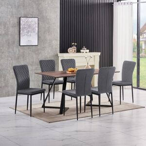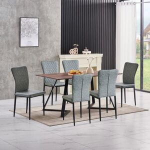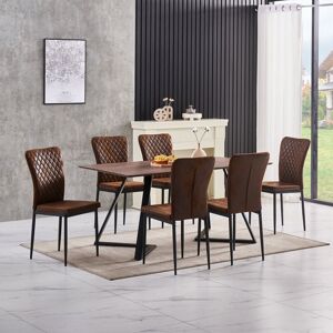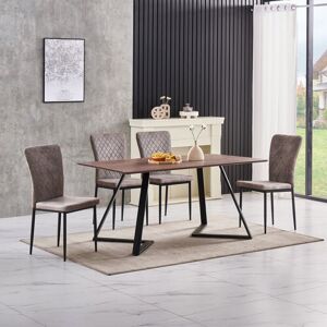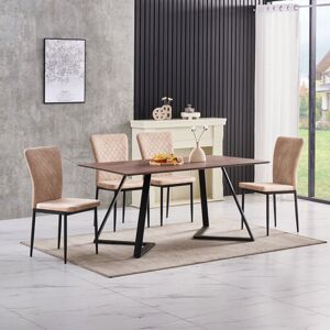 GENERAL DESCRIPTION This multi-functional chair is suitable for various settings, including kitchens, dining rooms, bars, living rooms, and cafes. It features comfortable padding and an easy-to-clean surface. The chair is stable and durable, with an ergonomic design that allows for long periods of sitting. The backrest is slightly tilted for added comfort and elegance. It also has protective plastic tips to safeguard the floor. TECHNICAL SPECIFICATIONS Foot material: metal Seat and backrest material: Velvet/PU/Suede (only brown is made of suede) Maximum load: 120 kg Table legs material: black solid powder coated iron Surface material: Medium Density Fiberboard Table size: 150 cm x 85 cm x 75 cm Tabletop thickness: 1.2 cm Table mechanism: fixed table INSTALLATION Simple installation with special tools included. The bottom of the table legs can be slightly adjusted for increased stability. OTHER INFORMATION Note: The item's color may vary slightly from pictures due to lighting and