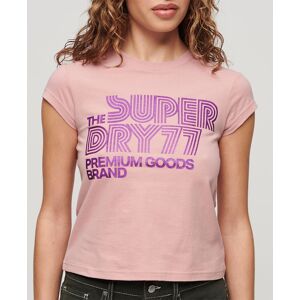 Our Retro Glitter Logo T-Shirt brings a playful side to your casual essentials.With a slim fit and cap sleeves to create the perfect silhouette, this tee is an instant hero piece.This 70s-inspired look will add a retro touch to your wardrobe, allowing you to style with both contemporary and vintage looks.Slim fit - designed to fit closer to the body for a more tailored look.Ribbed crew neck.Cap sleeves.Printed glitter Superdry logo.Signature Superdry tab.