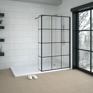 Wet Room Glass Screen This wet room shower features a black grid pattern design, providing your bathroom with a stylish focal point. The black grid has been printed on the outside of the glass, which makes cleaning easier. The wet room screen uses 8mm toughened glass for superior durability and a luxury feel. It has a height of 1950mm, helping to contain more splashes of water when taking a shower. The wet room screen can be used as a front panel or side panel to create an enclosure area. Specification -High quality matte black flat aluminum frame -1000mm matte black stainless steel adjustable support bar, can be cut to size -8mm clear toughened safety glass with easy clean coating, CE & BS EN 12150 certified -Contemporary black grid pattern creates an eye-catching feature -Can be fitted either on left or right hand so entrance can be on either side -All screws are made of stainless steel, resistant to rust -15mm out of true wall adjustment -This panel can be used as a front panel or side panel to create an enclosure area -Without shower tray Return Panel This return screen is designed to help contain more shower splashes and is perfect for use with our wet room screens. Measuring 1950mm tall, this return panel has a matte black aluminum profile and stylish grid pattern design. It uses toughened safety glass for superb strength and durability. Specification -Matte black aluminum profile -6mm clear toughened safety glass, CE & BS EN 12150 certified -Contemporary black grid pattern creates an eye-catching feature -Inside easy clean glass -180° rotating for ease of access -Can be fitted either on left or right hand so entrance can be on either side Belfry Bathroom