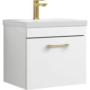 Rio 1 Drawer Wall Hung Vanity Basin Unit - 600mm - Gloss Grey with Brushed Brass D-shaped handle (Tap Not Included) Bring modern elegance and everyday practicality into your bathroom with the Rio 1 Drawer Wall Hung Vanity Basin Unit - 600mm - Gloss Grey with Brushed Brass D-shaped handle. Perfect for cloakrooms, en-suites, and compact bathrooms, this unit offers smart storage and a slim-edge ceramic basin that saves space while looking stylish. Its gloss finish enhances the room, while the soft-close drawer ensures smooth, quiet everyday use. Balterley offers coordinated bathroom furniture and brassware to help you create a seamless, designer-inspired bathroom. Combining modern style, functional storage, and long-lasting quality, this vanity unit is designed to elevate your space for years to come. Product Highlights: Wall Hung Design: Maximises floor space and makes cleaning easier, giving your bathroom a modern, open feel. Gloss Finish: Pristine gloss grey brightens your bathroom,