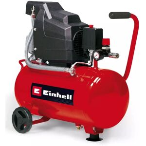 The TC-AC 190/24/8 is a versatile compressor, which is doing a good job at a lot of works with compressed air due to its compact measures and 8 bar working pressure. The regulated working pressure can be set precisely with the pressure regulator, and is displayed on the pressure gauge. Via quick-release coupling, various compressed-air tools can be connected quickly and without tools. The 24 liter tank has therefore sufficient air reserves. The oil lubrication pump saves the durability of the compressor. The operator´s safety is optimally provided due to a non-return valve and a safety valve. The condensate can be drained off the vessel comfortably and properly per drainage screw. The vibration-damped foot avoids vibrations and reduces noise. The holding bar and two rubber wheels care for quick mobility and easy transport. There is a 10 years warranty against perforation corrosion of the tank. Features The Einhell TC-AC 190/24/8 Air Compressor is fitted with a pressure gauge and