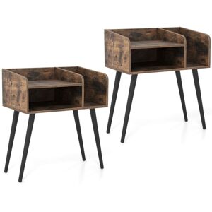Mid Century Modern Nightstand (Set of 2) with Open Shelves-Black - Costway
