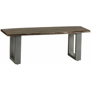 Elevate your dining space with the Grey Essential Live Edge Medium Sized Dining Set. Handcrafted from sustainable sourced solid Acacia Wood, it features a stylish grey matte finish with natural knots and cracks. The Industrial Style Chairs have black powder-coated metal frames and dark grey PU leather seats. Complete the set with the matching Grey Essential Live Edge Dining Bench, sharing the same matte finish and solid metal base. Redefine your dining experience with this chic, timeless furniture ensemble.