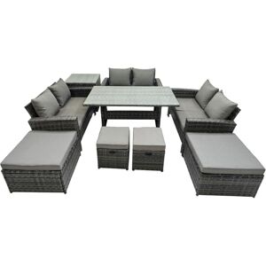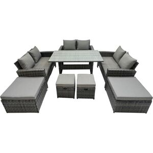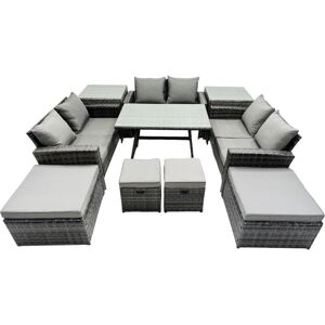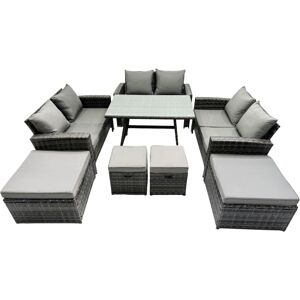 Important: Please put the gas fire pit on the glass top not under the glass .Do not cover the igniter with lava .please refer to the picture in the listing. we strongly recommend using 5 kg gas tank. Before using the fire pit ,please check it carefully if there is any leakage at the joint place or the hose . if the gas bottle is not fixed correctly or the hose has some leakage it may cause danger .Set Dimensions: 2 x Three Seater Sofa : 177W x 65D x 66H cm 1 x Fire Pit Table 140L x 80W x 69H cm 2 x Chairs: 74L x 65W x 66H cm 2 x Footstool: 65L x 65W x 34H cmLight grey mixed rattan with dark grey fabric .Color may some difference due to light or monitor .we are unable to return the item due to color problem .Cheap Price Compared With Other On Or Offline Store For Fire Pit SetItems Comes Flat Packed And Easy Assemble, Sturdy Galvanized Steel Tube Metal Frames With Powder Coating To Prevent The RustFlat PE Rattan Completely Made By Hand, 5mm Thickness transperant Tempered Glass With Sucker On Surface To Prevent Sliding8 CM Thick Seat Cushion With Soft Pillow Back Cushion Gives You More ComfortLow Maintenance ,Removable Cushion Cover And Easy Move To Different Place. Pls Keep the Cushion Indoor Or With Rain Cover When Not In Use . Keep The Furniture With Rain Cover If Not Use For Long Time .Factory Direct sale Guarantee The Quality And After Sale Service This item is for kerbeside delivery , we can't deliver to your room . WARRANTY&SUPPORT:Though we have nearly 100% checked before shipment , but as this item is 100% handmade and Fragile, so If you have any issues of assembly, missing parts, damaged or other problems of product quality of this outdoor rattan furniture set, please feel free to contact us, and our after-sales team will respond within 24 hours and offer you the most perfect and effective solutions. Fimous 10 Seat PE Wicker Rattan Lounge Sofa Set Outdoor Garden Furniture Set in Light Grey