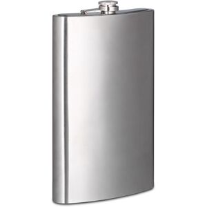 The compact flask with a xxl capacity of 1.8 litres is ideal for trips and travel. Fill it with homemade Schnapps as an original gift idea for the recipient. Hip flasks are also popular at stag or bachelor parties, on hikes or at bonfires. The screw-off cap is practical as it will never get lost. The pocket flask is made of stainless steel and is taste-neutral, so it doesn't affect the taste of your spirits. Stainless Steel Pocket Flask Details • Size: approx 29 x 18 x 5 cm • Capacity: approx 1.8 L • Material: Stainless steel • Colour: Silver • Diameter of opening: 2 cm • Emtpy weight: 0.4 kg • 2x XXL flask XXL Outdoor Hip Flask • Ideal for hiking and camping • Accessory for stag / hen parties, weddings, etc. • High-quality • Food-safe - Taste-neutral • Air-tight • With screw-off cap