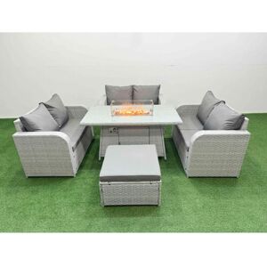 Important: Please put the gas fire pit on the glass top not under the glass .Do not cover the igniter with lava .please refer to the picture in the listing. we strongly recommend using 5 kg gas tank. Before using the fire pit ,please check it carefully if there is any leakage at the joint place or the hose . if the gas bottle is not fixed correctly or the hose has some leakage it may cause danger . Pls kindly leave your mobile number at checkout for not delaying your shipment . Set Dimensions: • 3 x Love Sofa Size: 124W x 67D x 79H cm •1 x Big footstool :65L x 65W x 34H cm • 1 x Firepit Dining Table Size: 140L x 80W x 69H cm Light grey PE rattan with dark grey fabric .Color may some difference due to light or monitor .we are unable to return the item due to color problem . Items Comes Flat Packed And Easy Assemble,Sturdy Galvanized Steel Tube Metal Frames With Powder Coating To Prevent The Rust Flat PE Rattan Completely Made By Hand, 5mm Thickness transparent Tempered Glass With