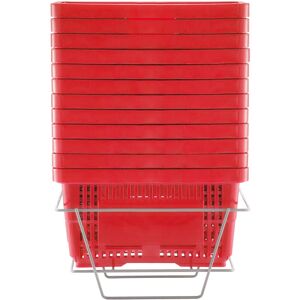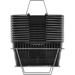Black Shopping Baskets Space-Saving and High Capacity for Maximum Convenience These shopping baskets are made from durable metal, offering long-lasting use with a large capacity. The comfortable plastic handle provides easy transport, and the baskets' size (16.1 x 12.2 x 7.1 in / 41 x 31 x 18 cm) ensures plenty of room for items. The set of 12 baskets can be stacked together with the included iron stand to save space, making it an ideal choice for supermarkets, bookstores, fruit stores, and more. Durable Metal Material Folding Steel Handles Upgraded Encryption Bottom Basket Stand Included Key Features Durable Metal Material: Made with strong metal and capable of holding up to 44 lbs (20 kg), this basket is perfect for carrying fruits, vegetables, snacks, and groceries, supporting your weekly shopping needs. Folding Steel Handles: The solid steel handles provide an ergonomic, rust-proof grip, ensuring long-term durability. Unlike plastic handles, these steel handles resist wear and