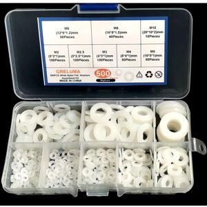 Package Include: M2 Nylon Flat Washer --- 2mmx5mmx1mm (ID*OD*Thickness), 100pcs; M2.5 Nylon Flat Washer --- 2.5mmx5mmx1mm (ID*OD*Thickness), 100pcs; M3 Nylon Flat Washer --- 3mmx6mmx1mm (ID*OD*Thickness), 100pcs; M4 Nylon Flat Washer --- 4mmx8mmx1mm (ID*OD*Thickness), 50pcs; M5 Nylon Flat Washer --- 5mmx10mmx1mm (ID*OD*Thickness), 50pcs; M6 Nylon Flat Washer --- 6mmx12mmx1.2mm (ID*OD*Thickness), 50pcs; M8 Nylon Flat Washer --- 8mmx16mmx1.5mm (ID*OD*Thickness), 40pcs; M10 Nylon Flat Washer --- 10mmx20mmx2mm (ID*OD*Thickness), 10pcs;