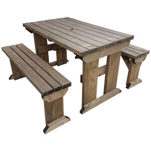 Product specifications Metric Table Height - 730mm / Width - 700mm Bench Height - 465mm / Width - 265mm Benches are 30cm shorter from table length - to slide them under Made out of Heavy-duty pressure treated timber 89mm x 38mm (4 x 2) All visible bolts have black cover caps to maximise safety and enhance the cosmetic table look All fixings are corrosion resistant Available in the rustic brown and light green (natural) finish (please, check the listing options below the photos) Timber sourced from responsibly managed forests Item is supplied in knockdown form for easy on-site assembly and to allow access to the site location. Easy to assemble and only requires a socket set and screwdriver (preferably battery-operated). Assembly instructions will be included with the 24-hour notification email. For your convenience, you can check our assembly video below. Please note: Imperial measurements are for representative purposes. The picnic bench will be cut in metrics 5ft - 150cm, 6ft - 180cm