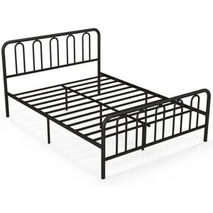 Upgrade your bedroom with style and functionality with this metal slatted platform bed! Constructed with a robust metal frame, this bed frame promises durability and a stable foundation that can support your mattress without the need for a box spring. Together with middle support legs, higher stability is ensured. Elegant headboard and footboard are designed in arc shape to enhance aesthetic appeal. Additionally, the space beneath the bed offers generous under-bed storage, keeping your space tidy and well-organized. The heavy-duty metal platform bed is easy to assemble due to its buckle design. Features: Graceful arc headboard and footboard for perfect visual effect Powder-coated metal slats ensure strong weight capacity 5 middle support legs enhance overall stability The metal beam features noise-free foam for a quiet sleeping night Sufficient under-bed space is easy to store items and clean the room Equipped with non-slip foot pads to prevent scratches Round corners prevent
