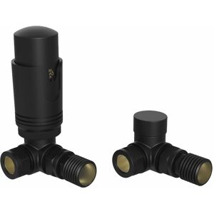 GENERAL DESCRIPTION This product is a set of radiator valves suitable for central heating radiators or towel rails. It includes a thermostatic radiator valve and a lockshield radiator valve, designed in a corner style. TECHNICAL SPECIFICATIONS Connections: 15mm inlet, 1/2' BSP outlet Radiator Valve Type: Thermostatic + Lockshield Valves Set Material: ABS/Brass Colour: White