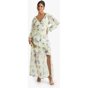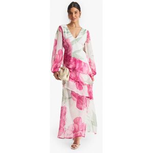 Romantic floral dobby maxi dress with delicate frill detailing for added movement Flattering V-neckline complemented by elegant billowing long sleeves Striking asymmetric hemline creates a contemporary silhouette with dramatic flair Captivating open back design with cross-strap detail for a head-turning exit Tiered construction adds dimension and visual interest to this occasion-ready piece Make a statement at your next special event with this enchanting floral dobby maxi dress from Boohoo. The asymmetric hemline creates a modern twist on a classic silhouette, whilst the delicate frills cascade beautifully with every movement. The billowing sleeves and open back design with cross-strap detailing offer the perfect balance of sophistication and allure. Style with strappy metallic heels as shown and a sleek clutch for weddings or race day events. For cooler evenings, layer with a tailored blazer or delicate pashmina. The versatile design transitions effortlessly from daytime garden parties to evening celebrations, ensuring you remain the epitome of elegance throughout the occasion. This dress is destined to become your go-to for memorable moments when you wish to command attention with refined grace.