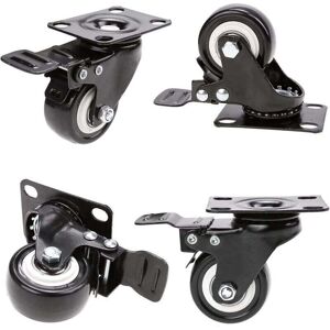 Wheel diameter: 50mm. The set comes with 4 swivel castors with brakes. Material: rubber wheel, extremely resistant steel plate. Rotation: 360 degrees, durable, silent, leaves no marks. Ideal for DIY and industrial applications, garden, home, schools, garage, trolleys, etc. Load capacity: 400kg, each castor supports 100kg, total 400kg.