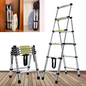 About this item -HIGH QUALITY: Our telescoping ladder is made of high-quality aluminum alloy, which can extend the service life of the folding ladder and improve its carrying capacity, it can carry up to 150kg/330lb. The ladder is heavy duty and stable, easy to carry and easy to retract. Manufactured to the highest standard, this ladder conforms to EN131 standards and is CE registered. It can be used indoors and outdoors, and is a good helper for life. -SAFETY LOCK DESIGN: Unique Extend and Locking Mechanism with Thumb Buttons. Every section is designed to open and close safely. As the structure is upgraded, it can be stowed gradually, so the ideal height can be adjusted by yourself. No matter what work you do, you can adjust the height of the ladder and lock it according to your needs, so you don’t have to worry about the safety. -PORTABLE & CONVENIENT: A sturdy closure strap secures the ladder firmly, comfortable grip handle, easy to carry it with one hand. The ladder can be folded